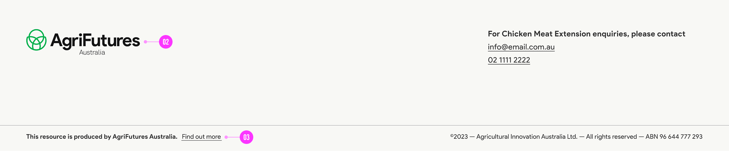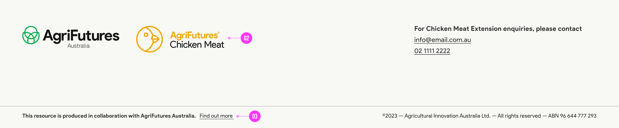 Clearly state that the micro-site is produced in collaboration with AgriFutures Australia in the bottom left of the footer